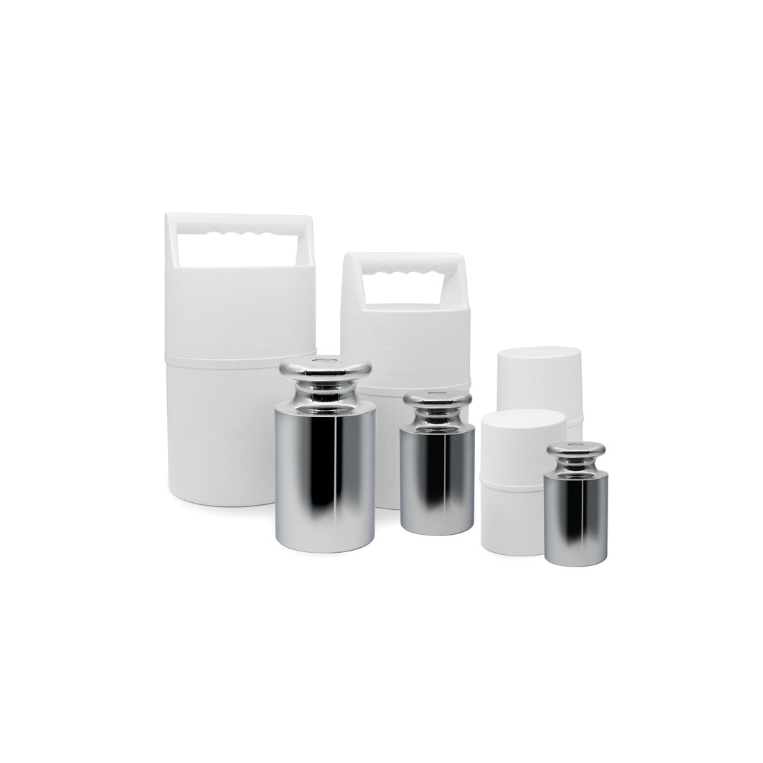 Pesas de precisión cilíndricas en acero inoxidable clase M1 en estuche de aluminio